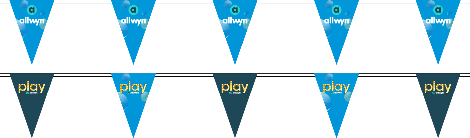 Υφασμάτινη τριγωνική γιρλάντα με 3 σημαιάκια ανά μέτρο διάστασης 22εκ πλάτος Χ 32εκ ύψος ραμμένα σε ιμάντα. Κατάλληλο για εγκαίνια καταστημάτων.